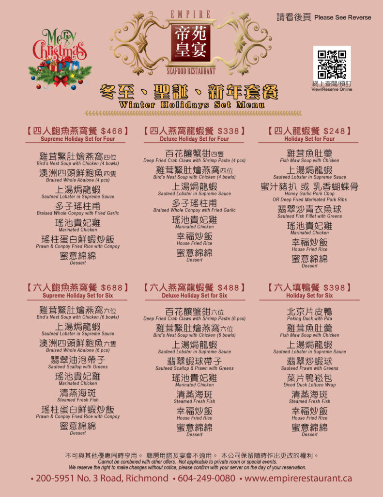 四六人冬至聖誕新年套餐 Winter Holidays Set Menu For Four & Six